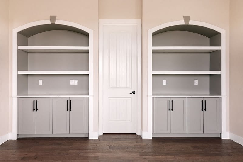 Struggling to find a place for your farmhouse chic decor? We’ve found that open shelving units can be installed anywhere from the living room, bedroom, or kitchen and provide the perfect opportunity to display antique or rustic items. Try adding some Shaker-style peg rails to a hallway or mudroom, the perfect place for guests to hang their coats and for framed photos and decorative items to rest on the shelf above.